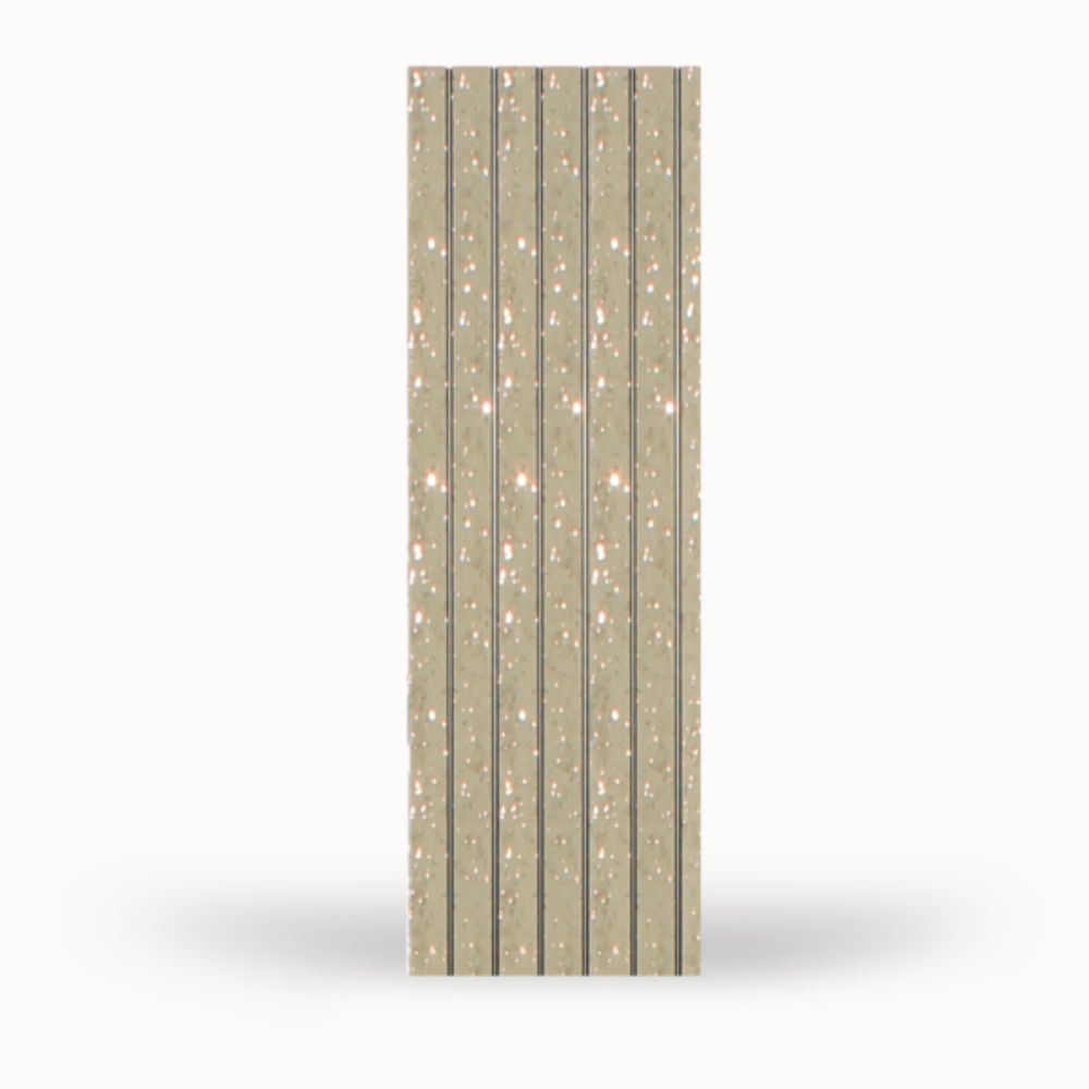 Taupe with copper splash slatted WPC panels create a warm, artistic accent with subtle metallic highlights.